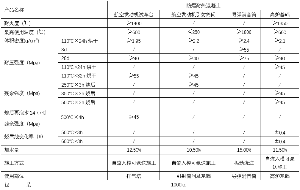 防爆耐熱混凝土是一種能長(zhǎng)期承受200℃以上高溫,并在高溫作用下能保持所需物理力學(xué)性能的特種混凝土,現(xiàn)已廣泛應(yīng)用于冶金、化工、石油、軍工、建材等工業(yè)的熱工設(shè)備,及長(zhǎng)期高溫作業(yè)的構(gòu)筑物,如:高爐基礎(chǔ),熱處理車間耐熱地面 ,鋼鐵廠渣井,高溫鍋爐及工業(yè)爐基地,導(dǎo)彈消音筒,航空航天發(fā)動(dòng)機(jī)試車臺(tái),煤氣化工火炬基礎(chǔ)等工程。