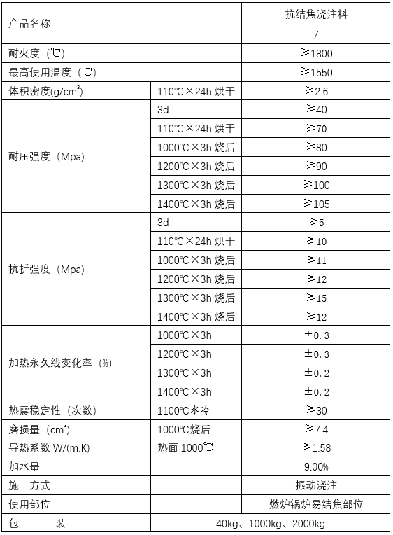 抗結(jié)焦?jié)沧⒘鲜俏夜緦榇笮腿济杭吧镔|(zhì)鍋爐爐膛前后拱開(kāi)發(fā)的一種抗侵蝕澆注料,因燃煤及生物質(zhì)鍋爐在燃燒過(guò)程中產(chǎn)生的飛灰及可熔物結(jié)焦在前后拱上,隨著時(shí)間的推移越積越多,會(huì)導(dǎo)致鍋爐的熱效率下降,嚴(yán)重的時(shí)候影響爐排運(yùn)行,大量的結(jié)焦物粘結(jié)在鍋爐前后拱上鍋爐起停爐時(shí),結(jié)焦物因溫度變化會(huì)局部開(kāi)裂、脫落造成前后拱澆注料連帶脫落,嚴(yán)重影響鍋爐運(yùn)行及前后拱使用壽命。此抗結(jié)焦?jié)沧⒘蠌?qiáng)度高,耐侵蝕,導(dǎo)熱系數(shù)高,不易結(jié)焦,成功解決了以上難題。