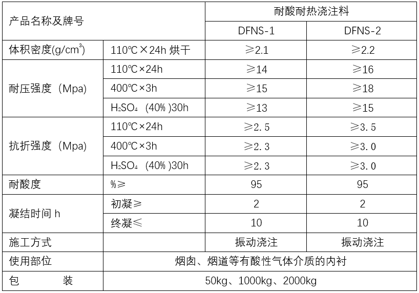 耐酸耐熱澆注料是一種新型防腐類澆注材料,它和易性好,施工方便,初凝,終凝時(shí)間適中,經(jīng)過高溫烘烤后強(qiáng)度繼續(xù)增長,且防滲,抗酸性能不降低。
