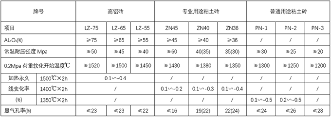 通用高鋁磚和粘土磚技術(shù)指標(biāo)